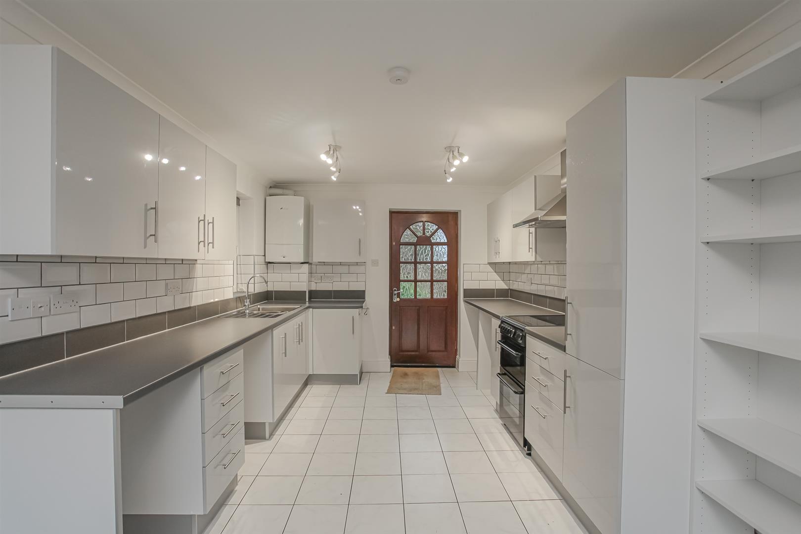 Located in this quiet location close to the town centre, a spacious three bedroom detached house in excellent order throughout. Master bedroom with fitted wardrobes and ensuite shower room, Double bedroom, Single bedroom, Bathroom with shower over, Living room, Spacious kitchen/breakfast room – fully fitted with electric cooker, Cloakroom, Gas CH, Boarded loft, Alarm, Large rear garden and courtyard to side, Off street parking for 2 cars, Single garage with power.