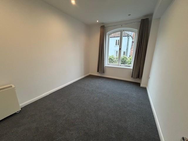 A converted spacious first floor, two double bedroom apartment situated in a private courtyard just off the Town Centre. Refurbished throughout. Available on a unfurnished basis, fitted kitchen with built-in appliances, contemporary bathroom suite, night storage heating, private parking. No Pets. One parking space.