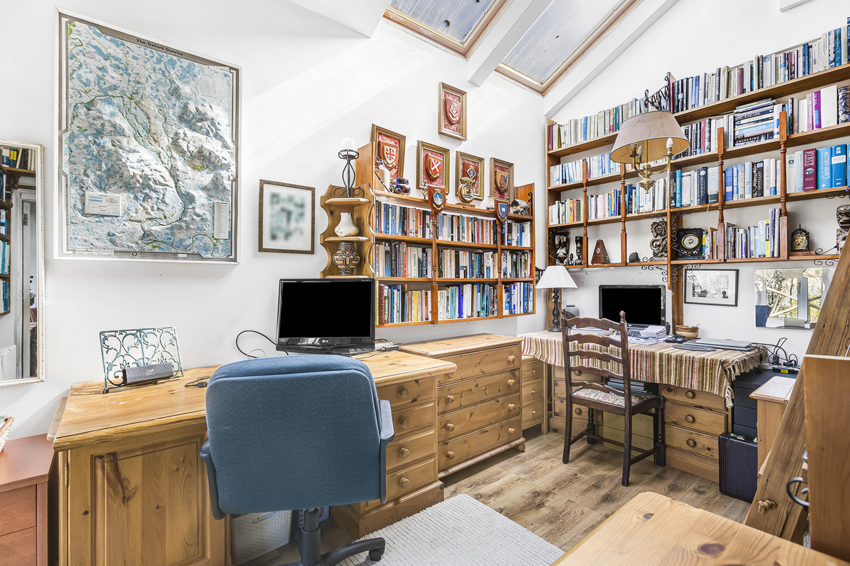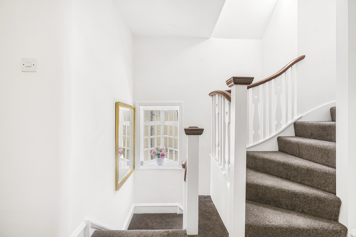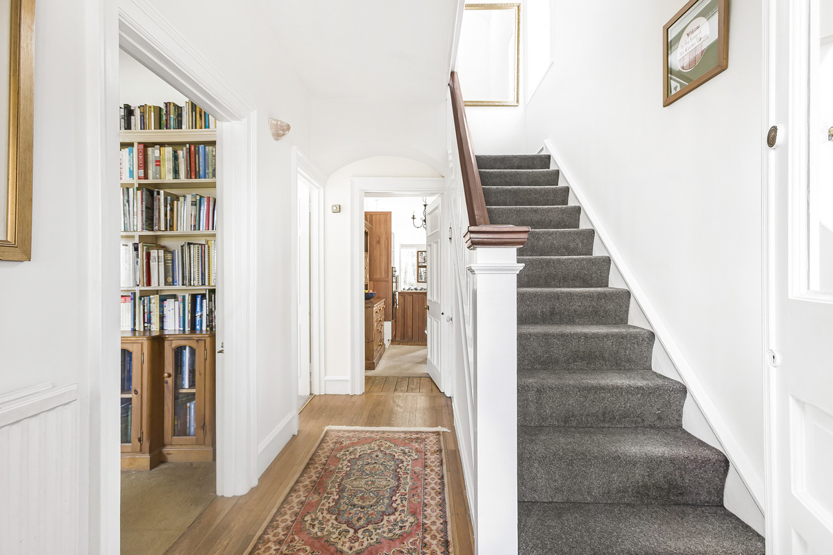 This attractive house dates from the 1930’s and retains a host of original features including high ceilings, panelled doors, picture rails, fireplaces, original cupboards and a wonderful staircase. In the late 1980’s the loft was converted and the original garage converted into a vaulted study, with rooflight windows.