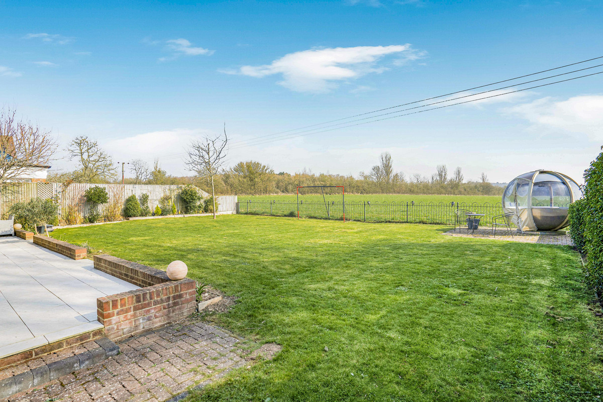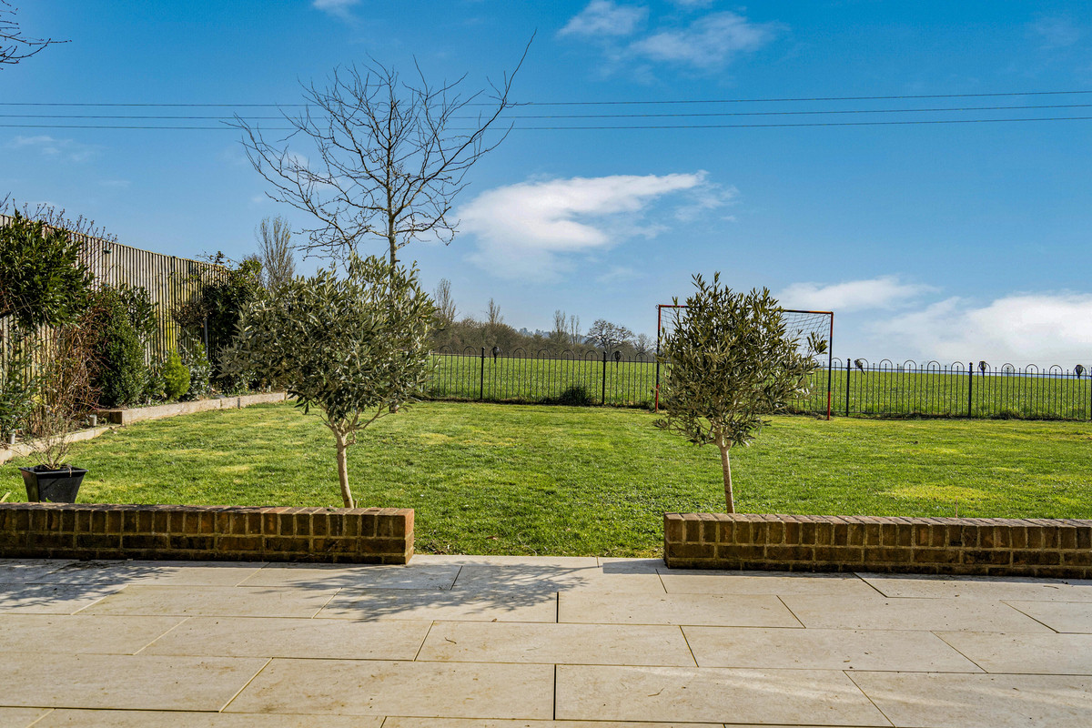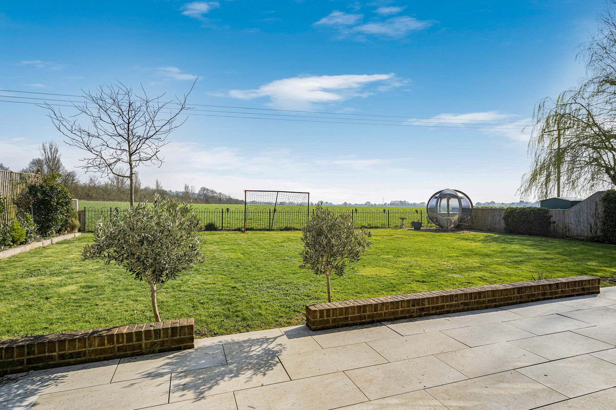 The rear garden is just east of south-facing looking across open farmland to woodland, Boars Hill, Abingdon and The Ridgeway. There is a large paved terrace, flower beds, mature shrubs and ornamental trees offering a choice of sitting areas. A side garden leads to the garage, timber shed and one of two pedestrian gates to the front of the house.