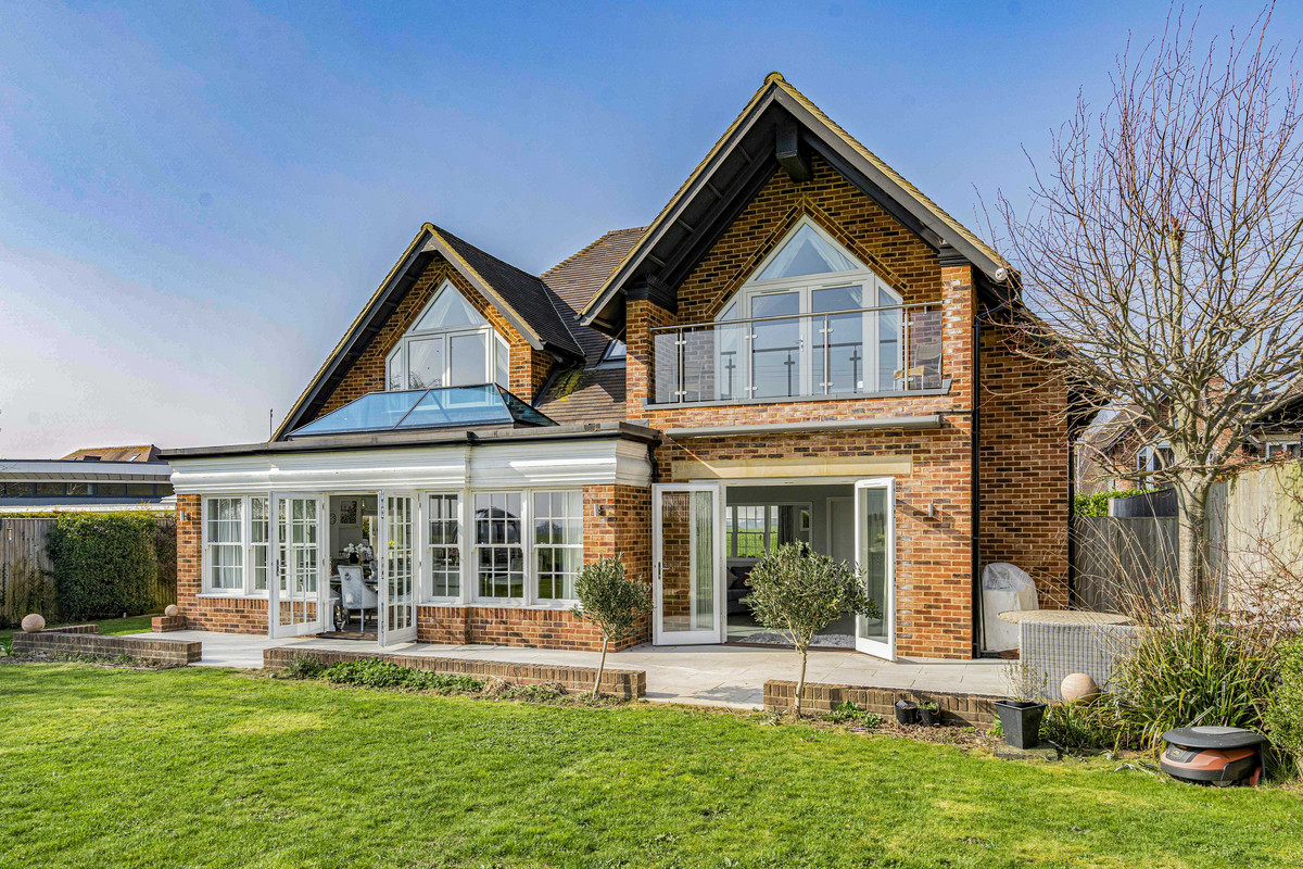 A truly contemporary home with a light and bright open-plan kitchen and living space to the rear of the house with a wall of windows, lantern roof-light and two sets of double doors opening to the garden. The house has been designed with very good levels of natural light and with a sense of style and modern living throughout. There are high ceilings, glass balustrades, a vaulted entrance hall and high quality kitchen and bathroom fittings. There is gas-fired underfloor central heating, double-glazed windows and doors and solar panels.