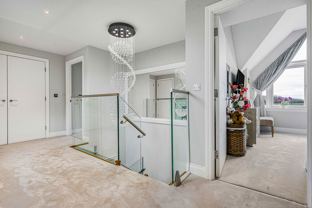 A beautifully-presented detached four to five bedroom family house built to a high standard and specification by Oxford Homes in 2018 and with spectacular views over open countryside.